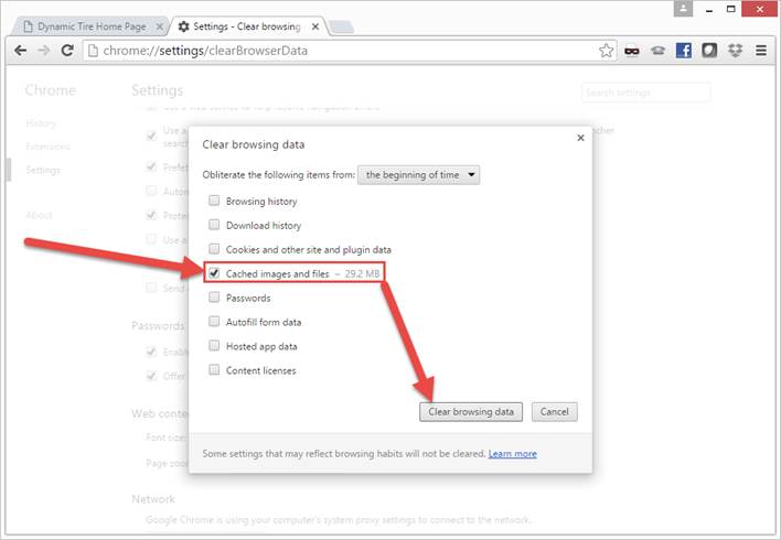 Ensure “Cached images and files” is checked off, and click on “Clear Browsing data”